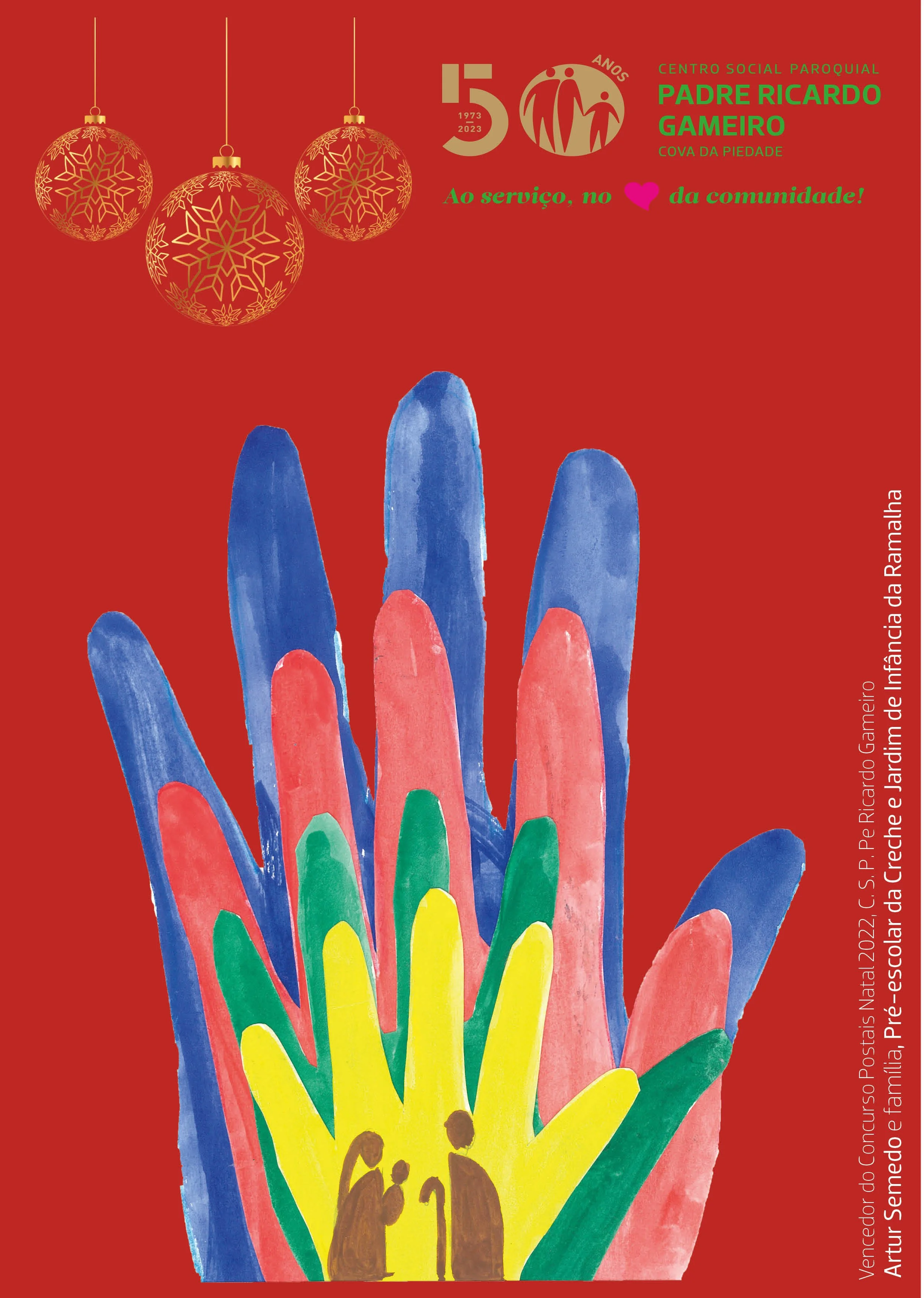 Com o mote “O melhor Natal está nas nossas mãos”, uma imagem colorida e um trabalho onde se evidencia a participação das crianças e família, o postal do Artur Semedo da Creche e Jardim de Infância da Ramalha (pré-escolar) foi a escolha da nossa Direção, enquanto imagem da Instituição para o Natal 2022.